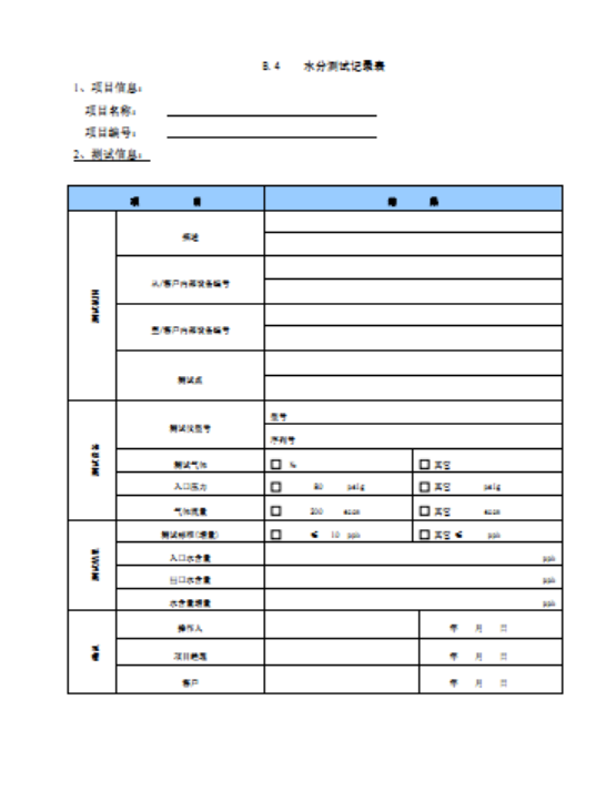 水分测试,气体速度应低于设计流速的10%,且小于3m/s,测试气源的水分应小于1ppbv,水分增量应小于20ppbv,测试结束后,应至少保持20min稳定在规定值以下为合格。